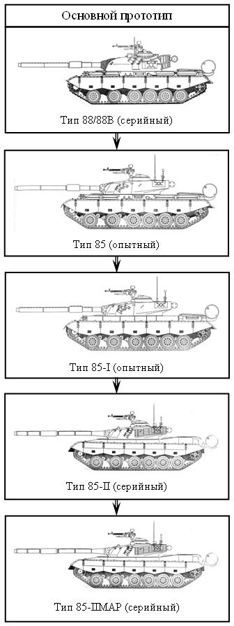 разработки ОБТ тип 88/88В для создания нового семейства ОБТ тип 85. Всего