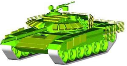 ИС-2 с противокумулятивными экранами. 1944. Вот примеры некоторых современных разработок в этой области: Танк Т-80БВ, оснащенный противокумулятивными решетчатыми экранами (РЭ) Представленные на данном танке противокумулятивные РЭ являются адаптированным вариантом защитных устройств, применявшихся на танках Т-55 и Т-62 в ходе боевых действий в ДРА. РЭ обеспечивают защиту бортов и кормы корпуса и башни от противотанковых гранат ПГ-7 и ПГ-9 с вероятностью 0,66. РЭ, установленные на Т-80БВ прошли испытания с положительными результатами и показали высокую эффективность в ходе боевых действий в ЧР. Оборудование танка Т-80БВ комплектом РЭ возможно в войсковых условиях с использованием индивидуального комплекта ЗИП. Продолжительность оборудования танка Т-80БВ комплектом РЭ составила 5,0 ч., а трудоемкость-12.5 ч. Для обеспечения технологичности технического обслуживания ходовой части и исключения повреждения их на марше по пересеченной местности бортовые экраны корпуса выполнены складывающимися в горизонтальной плоскости. Конструкция РЭ позволяет жестко фиксировать откидные секции в верхнем (походном) положении. Откидные части секции в нижнем положении не фиксируются жестко, их ход в сторону гусеничной ленты ограничивается ограничителями, приваренными в верхней части секции. Лобовые проекции корпуса и башни защищены комплектом навесной (или встроенной) ДЗ. Аналогичные РЭ были испытаны и прошли боевую проверку и на танке Т-72. Т-72 оснащенный противокумулятивной защитой Бронетранспортер БТР-80, оснащенный противокумулятивными РЭ Представленный
