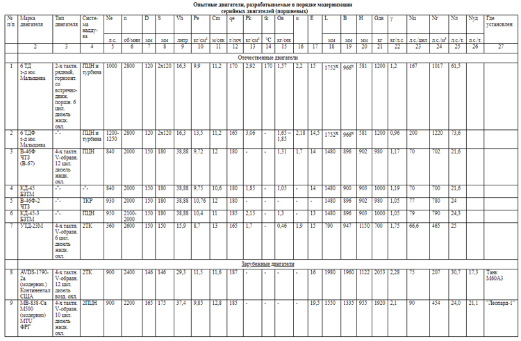 качеств) серийных танковых двигателей.