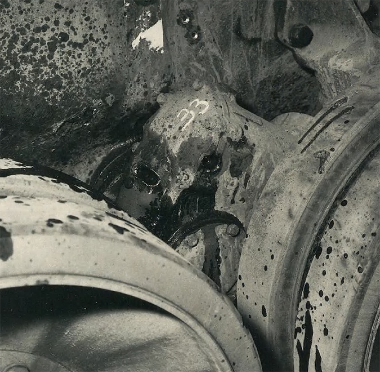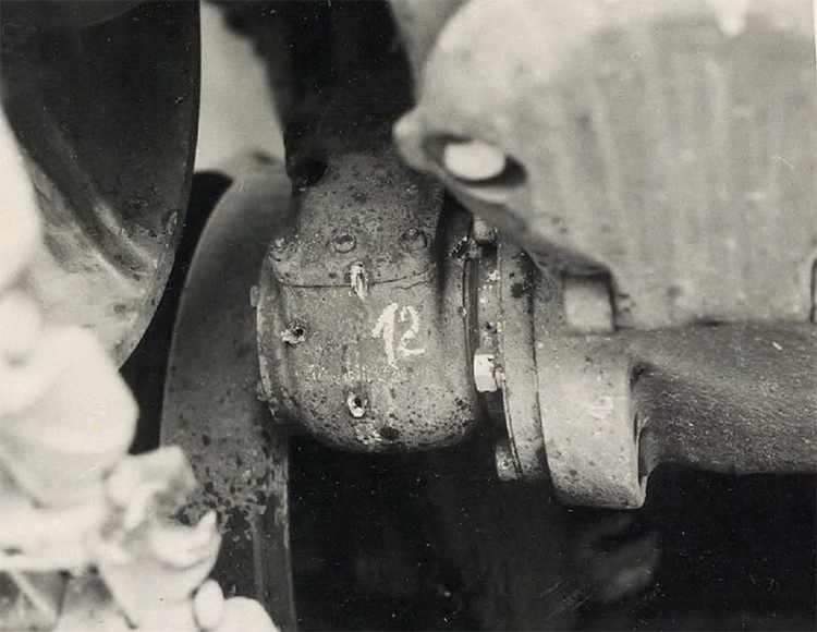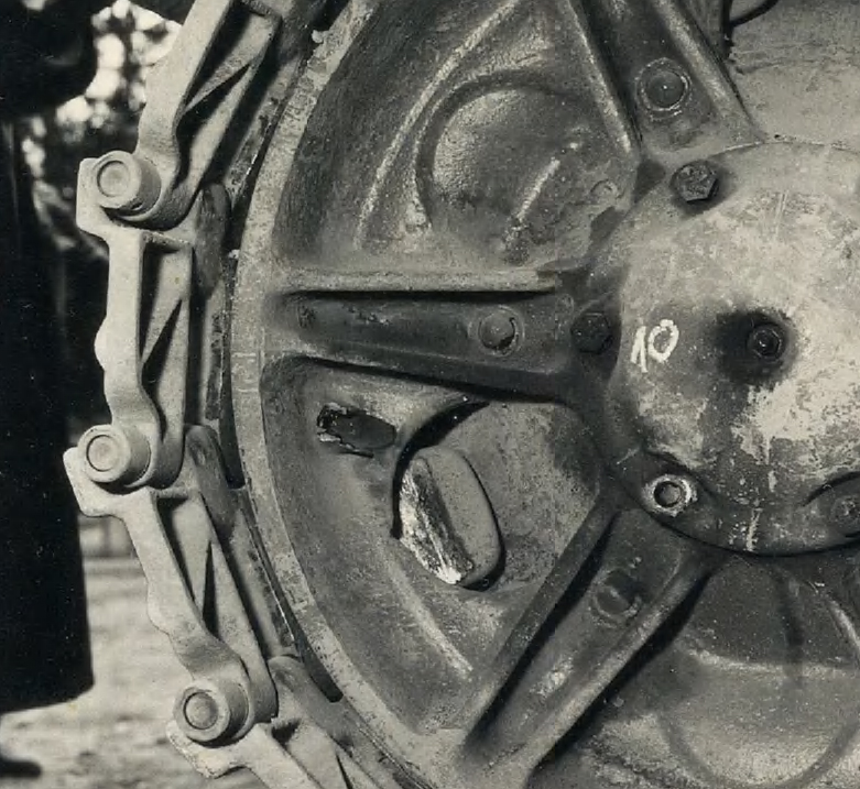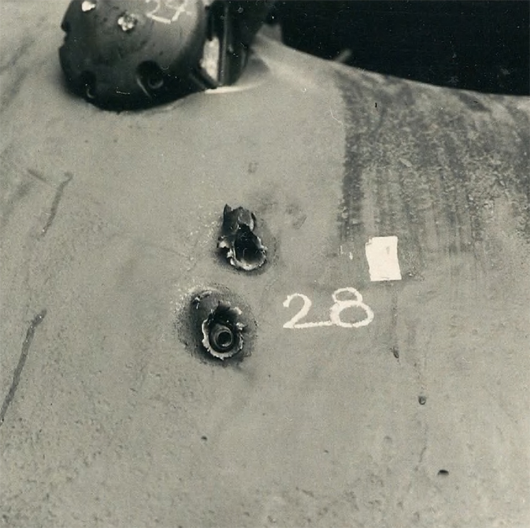 Две пули калибра 7,5 мм пробивают крышку ступицы, но не могут нанести подшипнику дальнейшего ущерба.