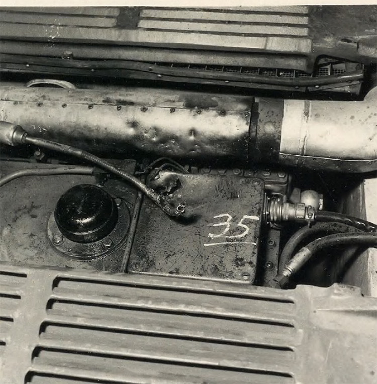 35. 20 mm Flab.Kan.38, Pz.G V/2 выстрела. Д=50 м. Пробит кабель рулевого управления Коммутационный кабель аккумулятора давления неисправен. Неисправна коробка датчика давления масла. После замены кабеля переключения передач коробка передач снова могла переключаться.