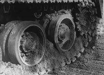 Рис. 12. Проходимость танка Т-64 на заболоченном участке и предельная забиваемость ходовой части, при которой теряется его подвижность.