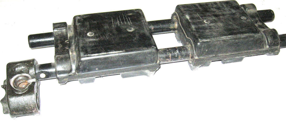 Балансиры первых, вторых и шестых подвесок отличаются от балансиров третьих, четвертых и пятых подвесок наличием пальцев для амортизаторов и шириной шейки под роликовый подшипник на оси катка.