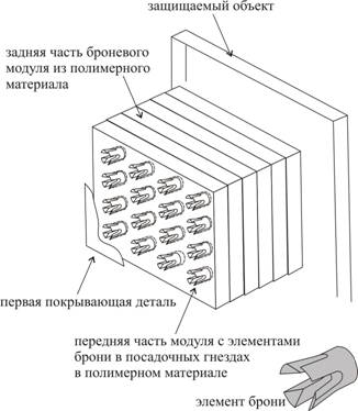 Для обеспечения защиты от РПГ в зарубежных странах ведутся активные работы по созданию новых броневых конструкций, не имеющих недостатков свойственных РЭ. Ведущими разработчиками в данной области могут считаться израильская Plasan Sasa Ltd с комплектом броневых модулей FLEXFENCE, швейцарская RUAG с комплектом SidePRO-RPG и SidePRO-ATR и датская Composhield. 1, 2. Броневые модули FLEXFENCE, Plasan Sasa Ltd FlexFence на патрульной машине Oshkosh Sandcat (M-LPV) и VAB «Ultima». Конструктивно защитные модули FLEXFENCE могут иметь ряд отличий, но их основной принцип построения и функционирования идентичен. Броневой модуль представляет собой полимерный материал с элементами брони, расположенными в посадочных гнездах. Первая покрывающая панель, передняя часть модуля в которой установлены элементы брони, и задняя часть модуля изготовлены из полимерного материала, плотность которого не достаточна для инициирования гранаты РПГ. Броневой модуль может содержать заднюю часть из аналогичного применяемому для установки элементов брони полимерного материала, который обеспечивает отступ между функциональным слоем и корпусом. Существуют варианты броневых модулей установленных на рейках для создания регулируемого воздушного зазора. В таком варианте исполнения полимерный материал в задней части модуля не устанавливается. В баллистических экспериментах с РПГ обычно достигается один из трех результатов: