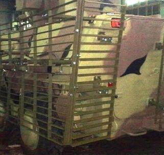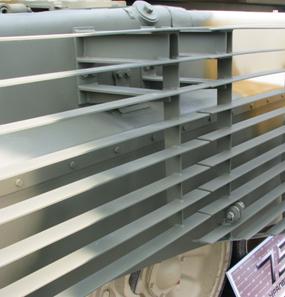 1 броневой модуль 2' внутренняя поверхность 3 стальной стержень 8 слой крепления стержней 9 композитный материал с низкой плотностью 10 наружное защитное покрытие 11 плита из композитного материала Выводы Фото 1, 2. Решетчатые экраны БТР-4Е Украинского производства и танка Т-90СМ (Россия). На схеме показаны недостатки РЭ (справа) от противотанковых средств, атакующих с возвышения (и снизу). Таких недостатков лишены новые комплекты броневых модулей FLEXFENCE, SidePRO-RPG и других изделий использующих аналогичные принципы. Наряду с меньшей массой и большей вероятностью защиты от атакующих боеприпасов (0,70..0,75) новые комплекты броневых модулей обладают и лучшими показателями по защите при обстреле в условиях актуальных на данный момент условий применения в городской застройке. Актуальность новых средств защиты от РПГ очевидно осознают и в Российской Федерации. Решения аналогичные применяемых в израильском FLEXFENCE планируется применить на перспективном российском бронеавтомобиле Тайфун-К». Такие модули, называемые в РФ «защитные маты», по сравнению с РЭ обладают высокой вероятностью защиты, быстротой и удобством установки на защищаемый объект, низкой массой (12 кг/м2). Установка защитных матов для «Тайфун-К». twower.livejournal.com/ Конструктивно выполнение требований защиты от РПГ осуществлено с помощью матов специальной конструкции с вероятностью защиты не менее 0,75. К корпусу автомобиля специальные маты устанавливаются специальными ремнями, позволяющими их быструю установку и демонтаж. "Тайфун-К" ОАО "КАМАЗ" Защита окон осуществляется с помощью стандартных решетчатых экранов