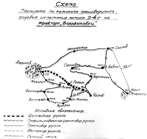 Замена целины на песни при тяговых испытаниях с Т-35 вызвана местными условиями – отсутствие целины вблизи выбранного участка пути. Однако эта замена нисколько не облегчила нагрузки на двигатель. Работа двигателя в условиях глубоких песков была наиболее напряженной за все время испытаний.
