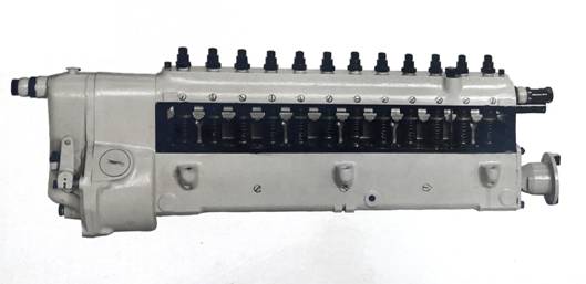 Насос из 12-ти плунжерный с золотниковым управлением подачи топлива. Топливоподающая прецизионная пара плунжер-гильза с диаметральным зазором в два микрона подает топливо в цилиндр под давление 600 атмосфер.